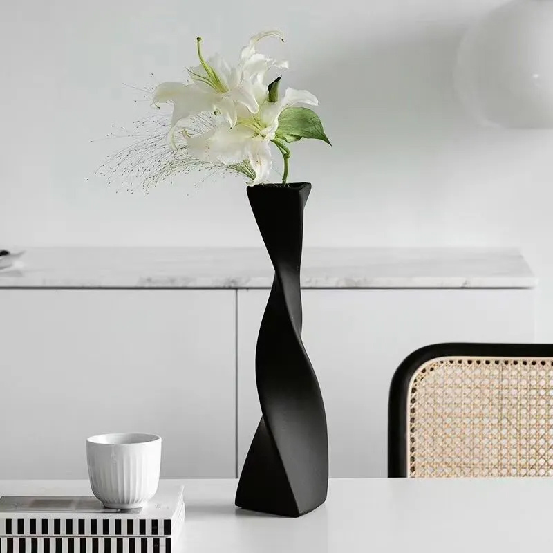 Home > Creative Floor Vase Tall Ceramic Vase Black And White Nordic Simple Spiral Vase Living Room Desktop Ceramic Ornaments Home Decor