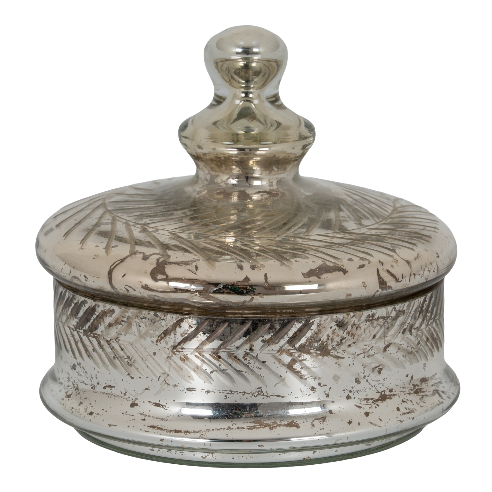 This is the Silver Foil Effect Large Trinket Jar. A handcrafted silver foil trinket jar with beautiful etching. Add one as a finishing touch to your favourite shelfie or pair it with the matching smaller version for a staggered height display. The perfect finishing touch to almost any surface space.