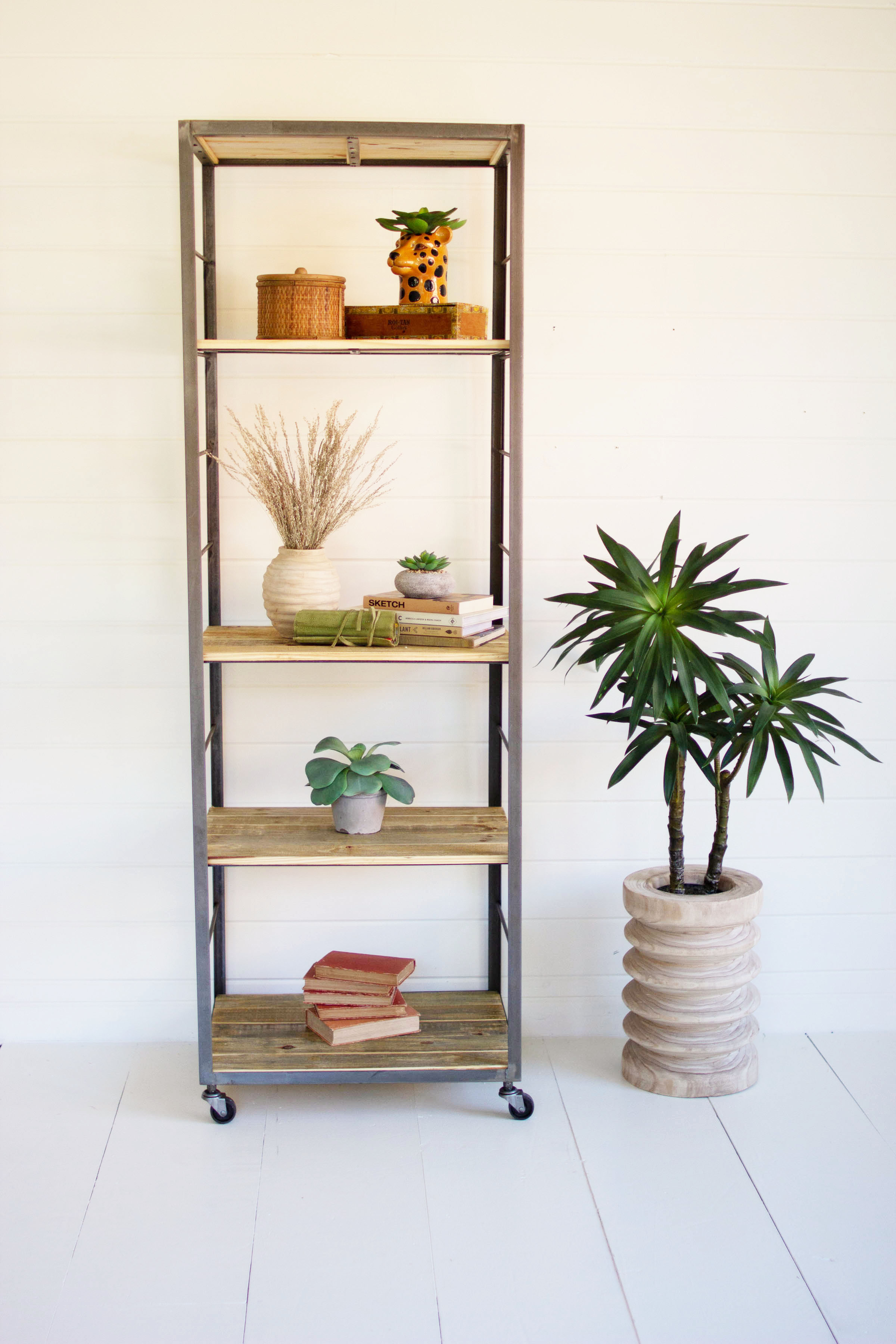 Home > Tall Shelving Unit With Adjustable Recycled Wood Shelves